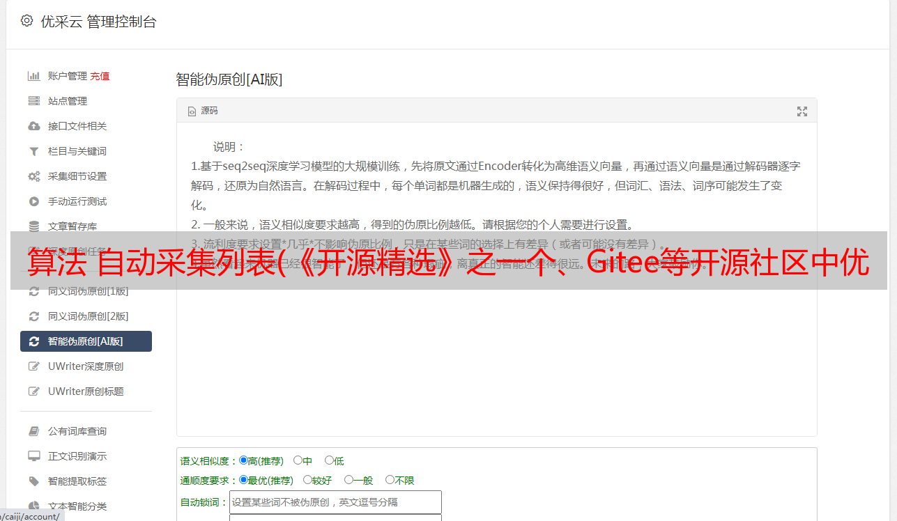 算法 自动采集列表(《开源精选》之一个、Gitee等开源社区中优质项目)