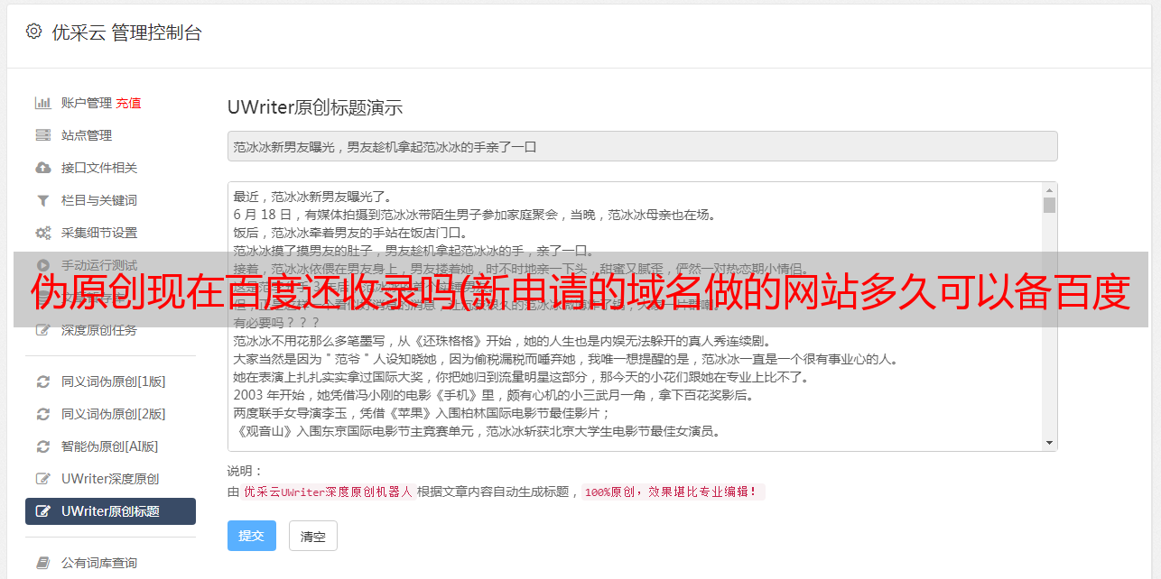 伪原创现在百度还收录吗(新申请的域名做的网站多久可以备百度搜索到呢?)