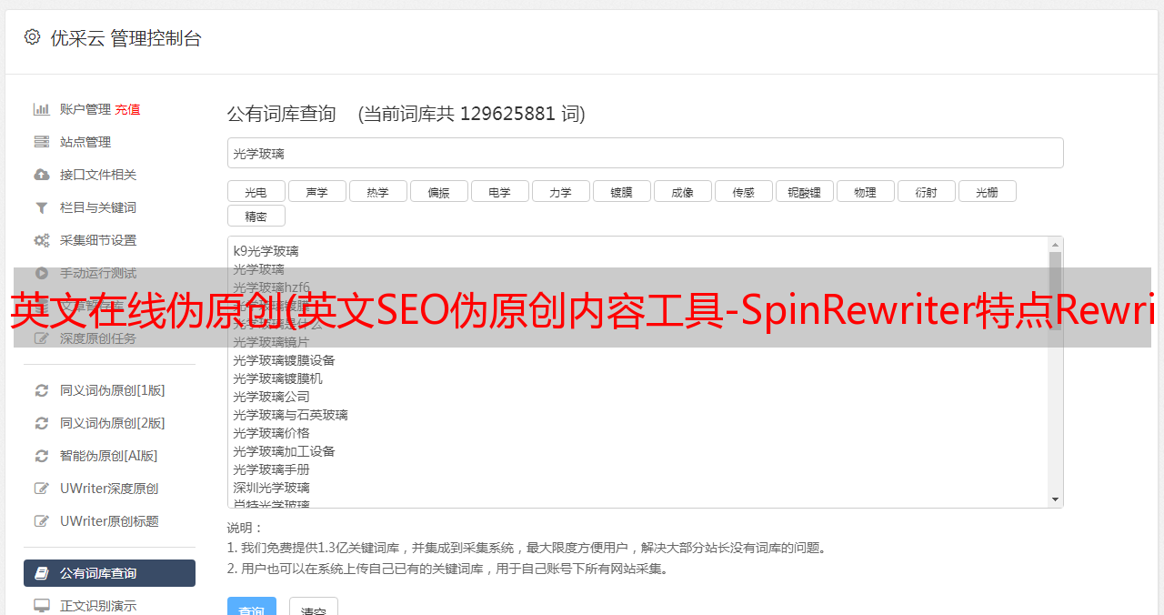 优采云 发布时间: 2022-03-29 19:24英文在线伪原创(英文SEO伪原创内容工具-SpinRewriter特点Rewriter)