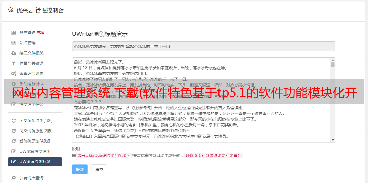 优采云 发布时间: 2022-03-29 20:13网站内容管理系统 下载(软件特色基于tp5.1的软件功能模块化开源系统)