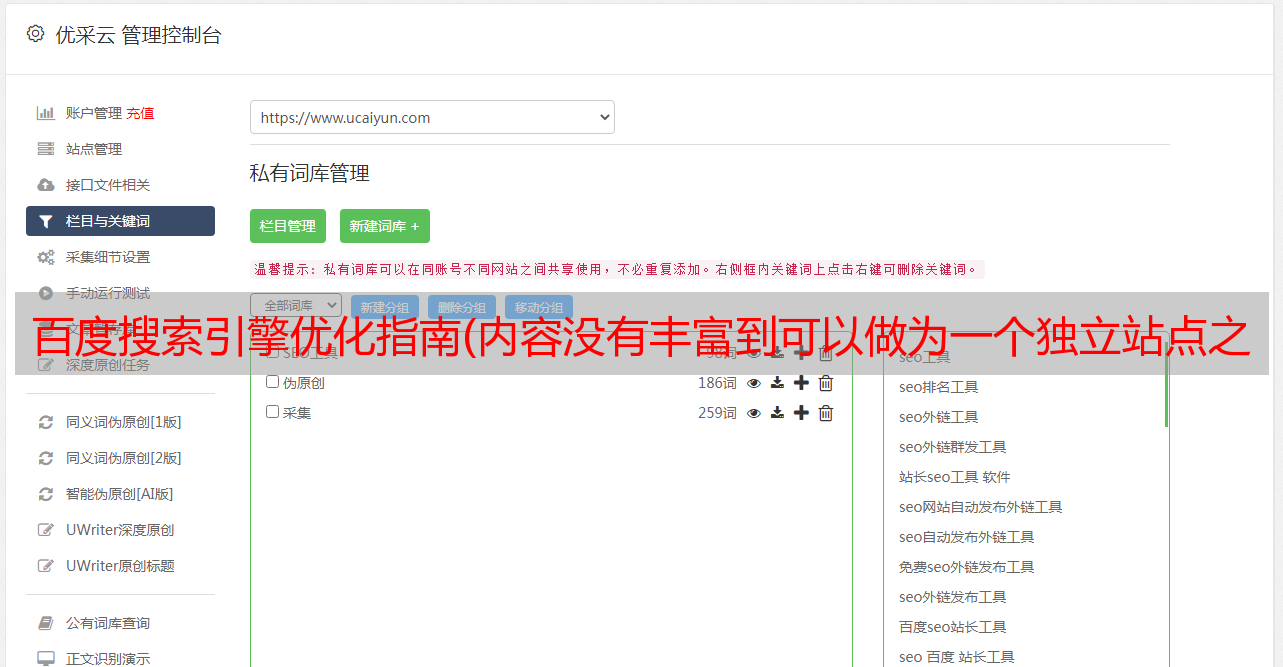 优采云 发布时间: 2022-03-29 21:04百度搜索引擎优化指南(内容没有丰富到可以做为一个独立站点之前的表现)