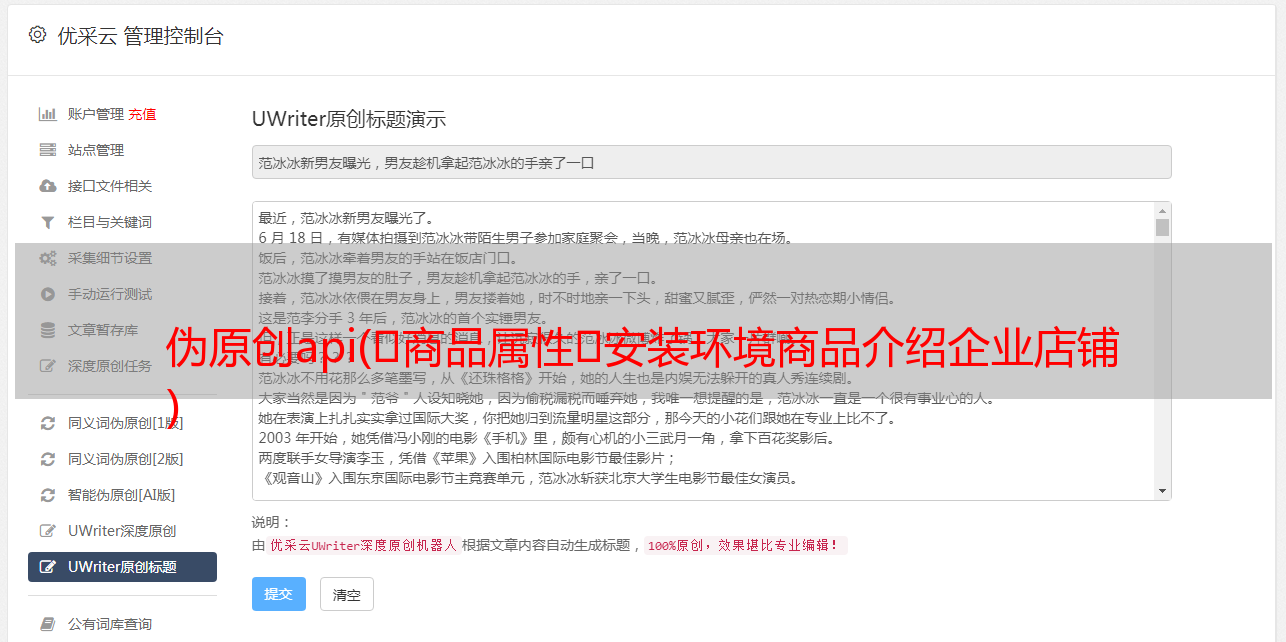 伪原创api(商品属性安装环境商品介绍企业店铺 )