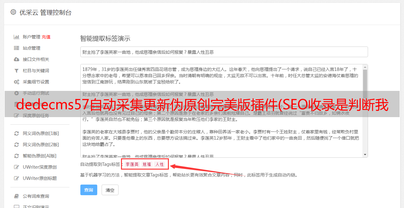 dedecms57自动采集更新伪原创完美版插件(SEO收录是判断我们网站优化好坏的一个因素,博主 )