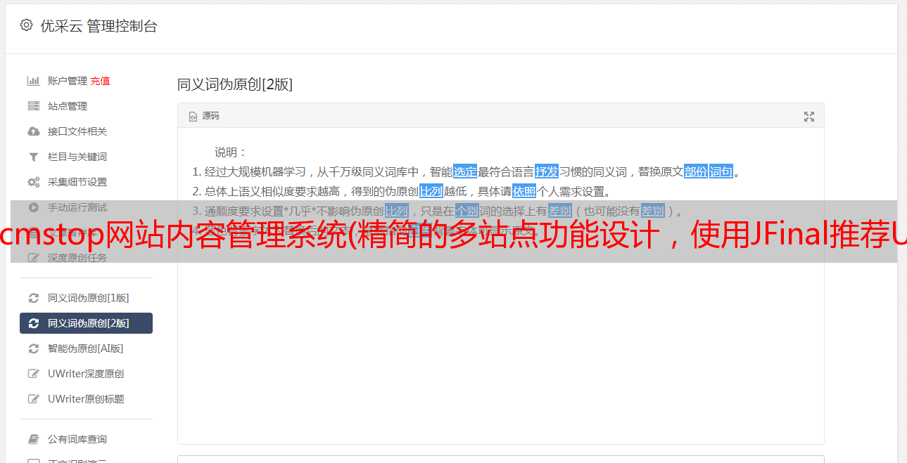 优采云 发布时间: 2022-03-30 11:29cmstop网站内容管理系统(精简的多站点功能设计,使用JFinal推荐Undertow(图))