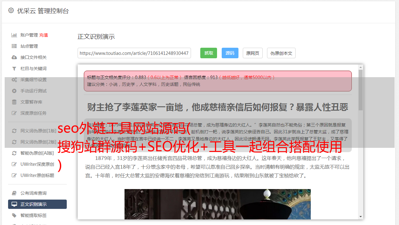 seo外链工具网站源码( 搜狗站群源码+SEO优化+工具一起组合搭配使用 )