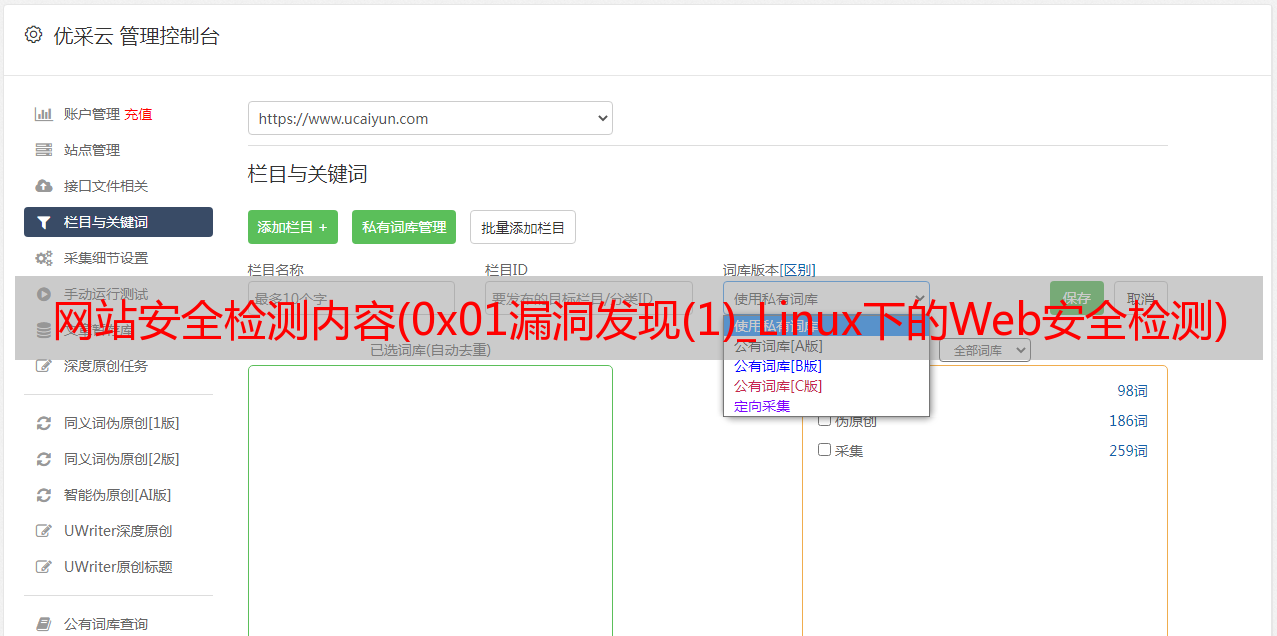 优采云 发布时间: 2022-03-30 14:26网站安全检测内容(0x01漏洞发现(1)_Linux下的Web安全检测)