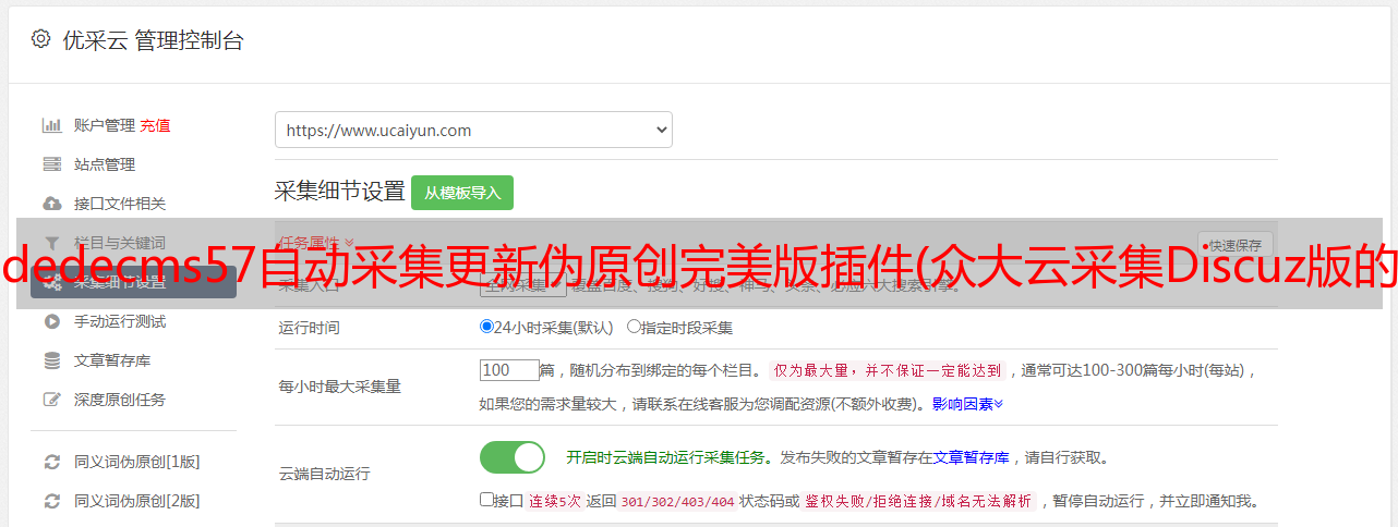 dedecms57自动采集更新伪原创完美版插件(众大云采集Discuz版的功能特点及特点介绍-温馨提示 )