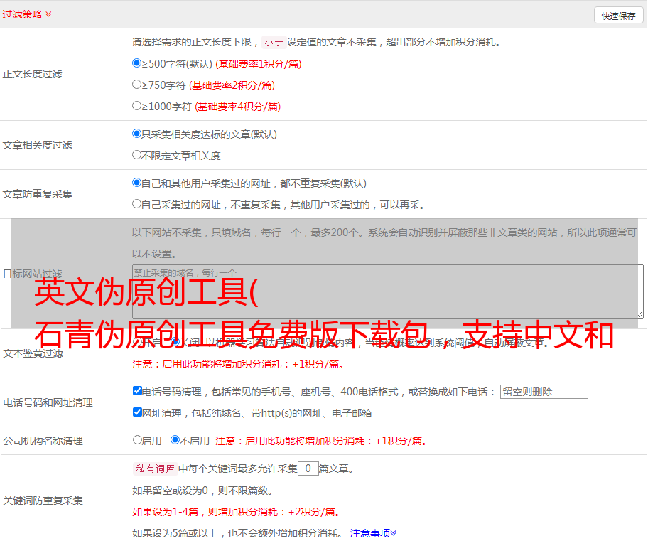 3、更新网络伪原创功能;