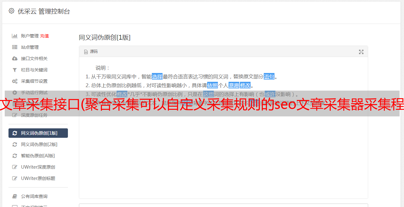 优采云 发布时间: 2022-03-30 17:05文章采集接口(聚合采集可以自定义采集规则的seo文章采集器采集程序