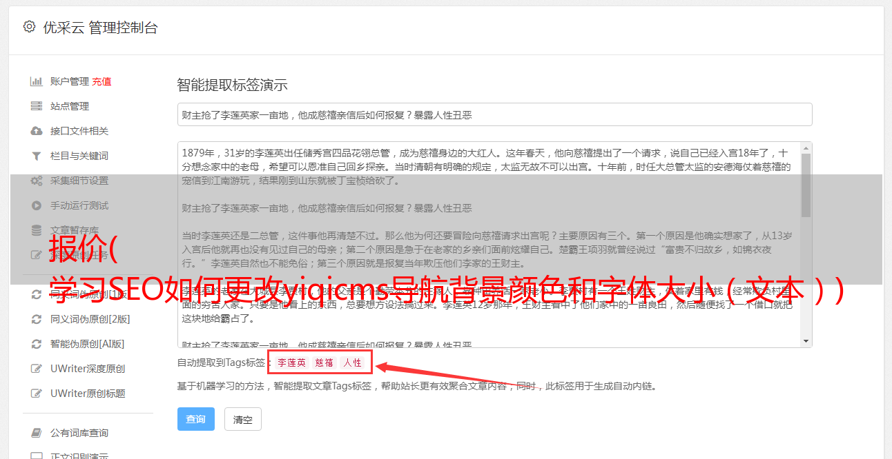 报价( 学习SEO如何更改yiqicms导航背景颜色和字体大小(文本))