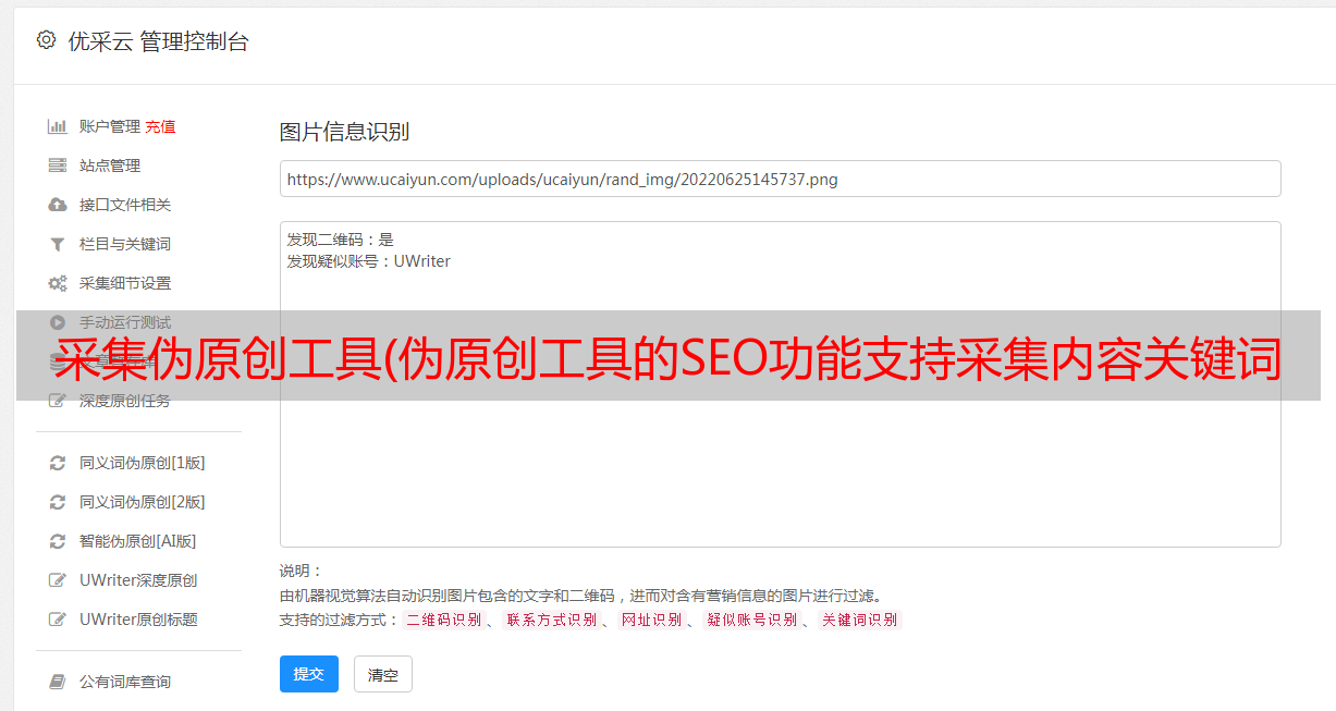 在内容选择方面,采集站项目中内容选择方向要慎重,避免原文中的敏感词和作者信息。对于抄袭原文的,当然也可以注明出处。内容的选择也关系到流量和未来的盈利能力。如果选择一般的文章采集,肯定不会有这么大的价值。伪原创工具的SEO功能支持采集内容关键词屏蔽或替换,去除原图水印,清除电话号码、地址、姓名等,实现内容纯净。