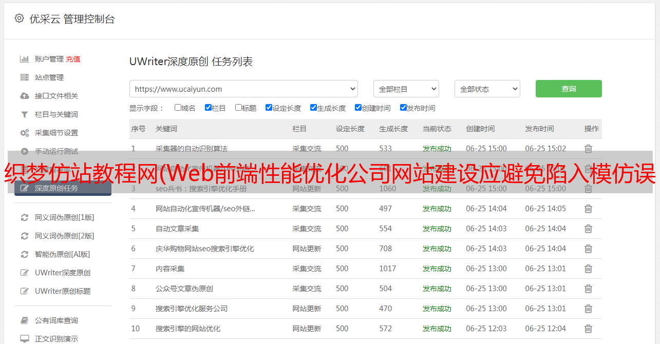 优采云 发布时间: 2022-03-31 01:16织梦仿站教程网(Web前端性能优化公司网站建设应避免陷入模仿误区及仿站陷阱