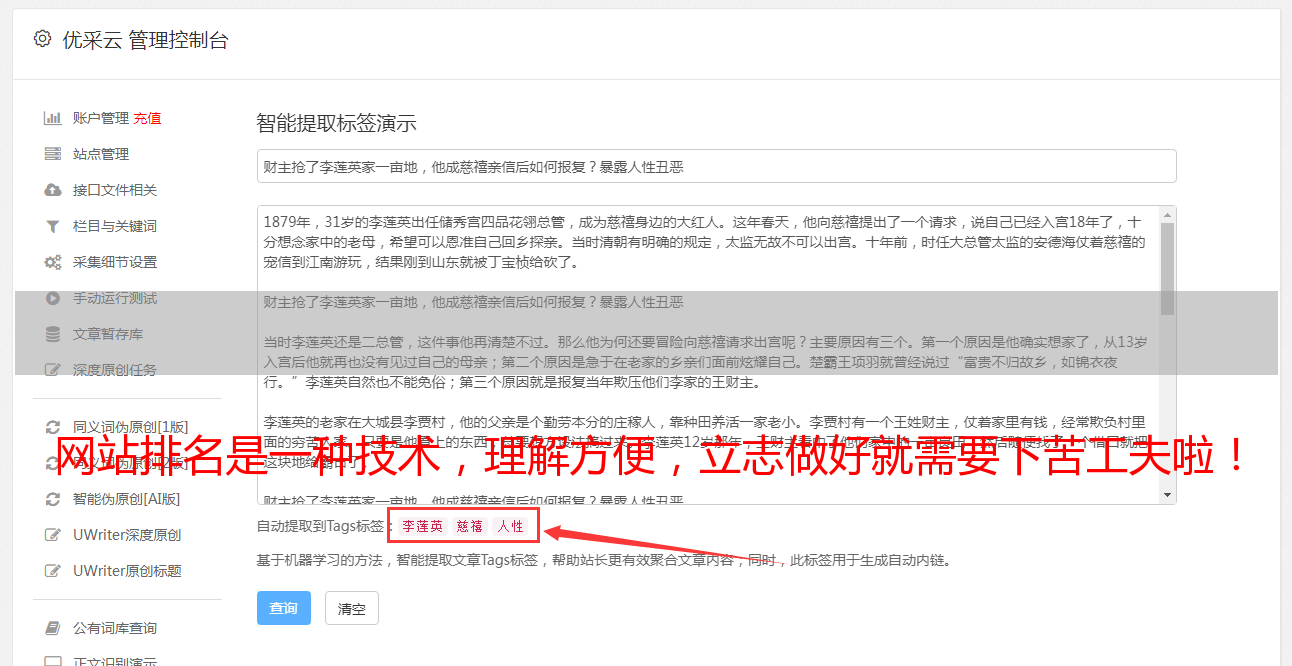 网站排名是一种技术,理解方便,立志做好就需要下苦工夫啦!