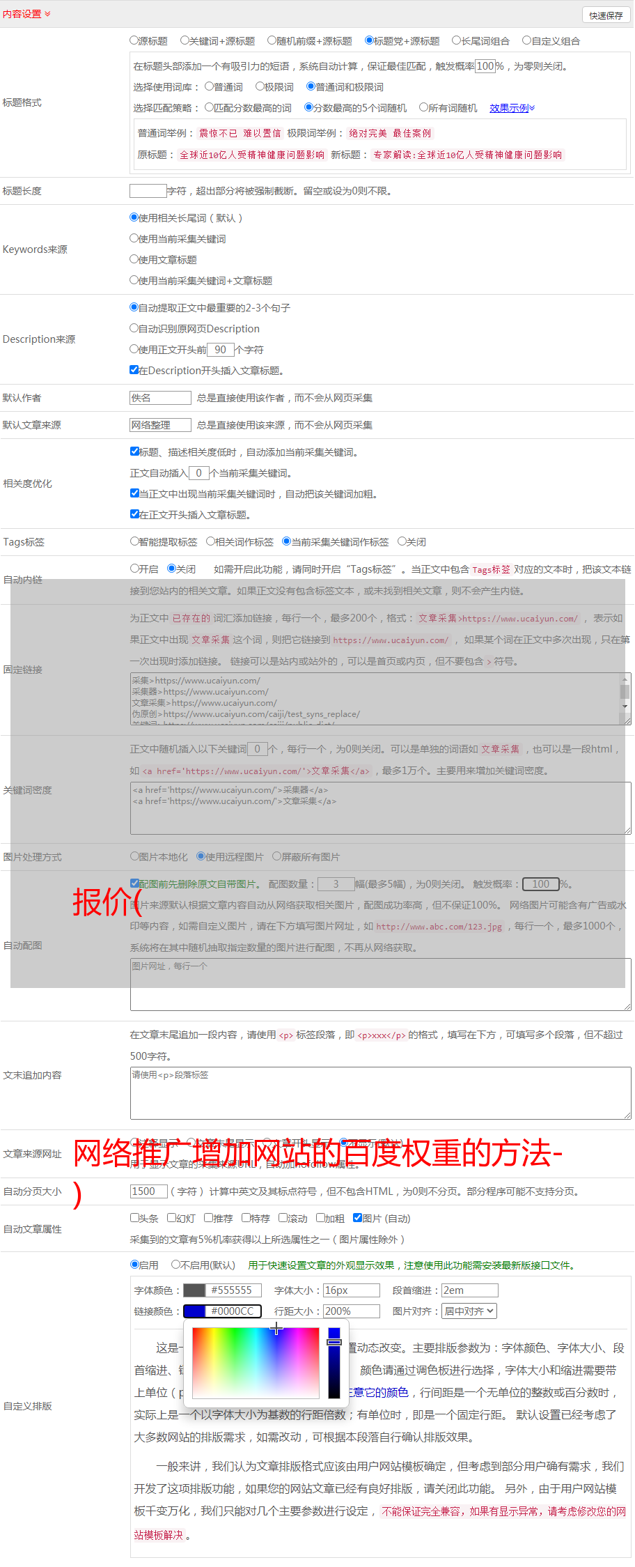 网络推广方式增加百度权重网站1、搜索引擎标题标题在搜索引擎中占有相当大的比重。所以,在做任何无用的事情之前一定要三思而后行。你为什么这么说?搜索引擎对标题中的关键字和连字符非常敏感。游戏的一侧会,底部的关键字不会排名。我们都知道,我们在做关键词的时候,需要把它们放在前面。这样一来,搜索引擎就会认为你的关键词很重要,需要大家,而且在行业里也很厉害,那么它肯定会给你一个很好的排名,SEO等技巧和网络推广技巧,如果前提是一样的,搜索那个关键词的SEO技巧会排在最前面。
