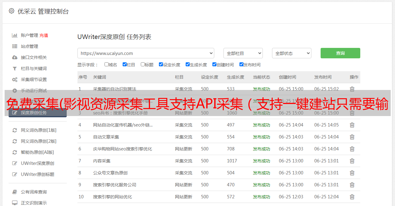 免费采集(影视资源采集工具支持API采集(支持一键建站只需要输入域名选择影视模板) )
