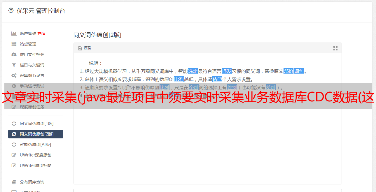 优采云 发布时间: 2022-04-01 00:27文章实时采集(java最近项目中须要实时采集业务数据库CDC数据(这里数据)