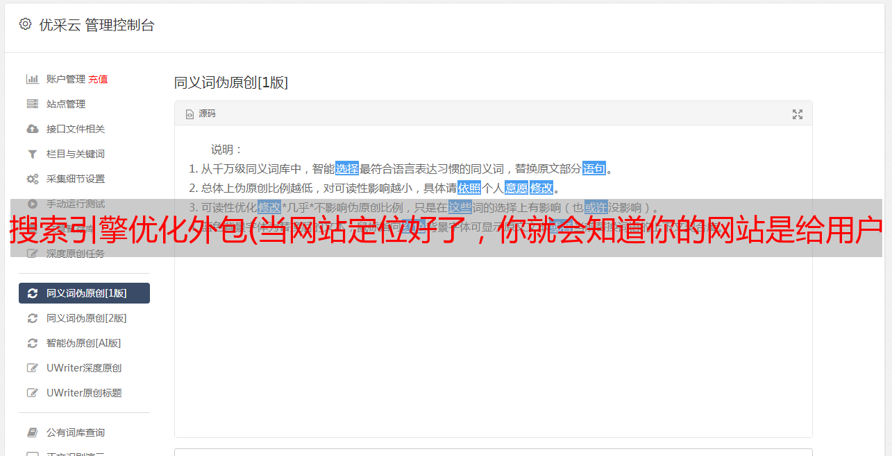 当 网站 定位好的时候,你就会知道你的 网站 会给用户提供什么,然后你会围绕这个定位写一些 原创文章让用户满意,让用户有品质。今天的搜索引擎喜欢原创*敏*感*词*和高质量的内容。你不能采集别人的文章,不能有排名,甚至可能不被收录。但是作为一个伪原创的人,拿别人的文章去改是没问题的,但是要区分和提供原创文章不能提供的东西,所以有排名和记录。制作原创内容要满足用户的需求,而不是为了原创,所以不好玩。