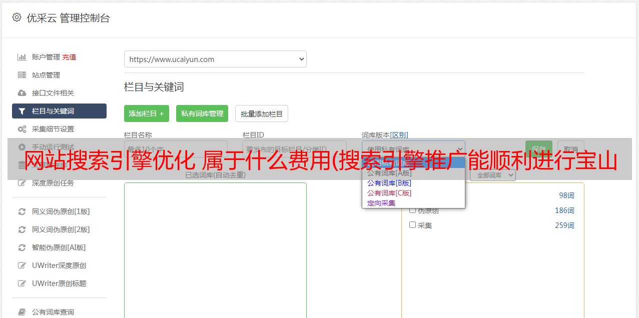 优采云 发布时间: 2022-04-01 04:04网站搜索引擎优化 属于什么费用(搜索引擎推广能顺利进行宝山区优化选哪家些目标做排名优化)