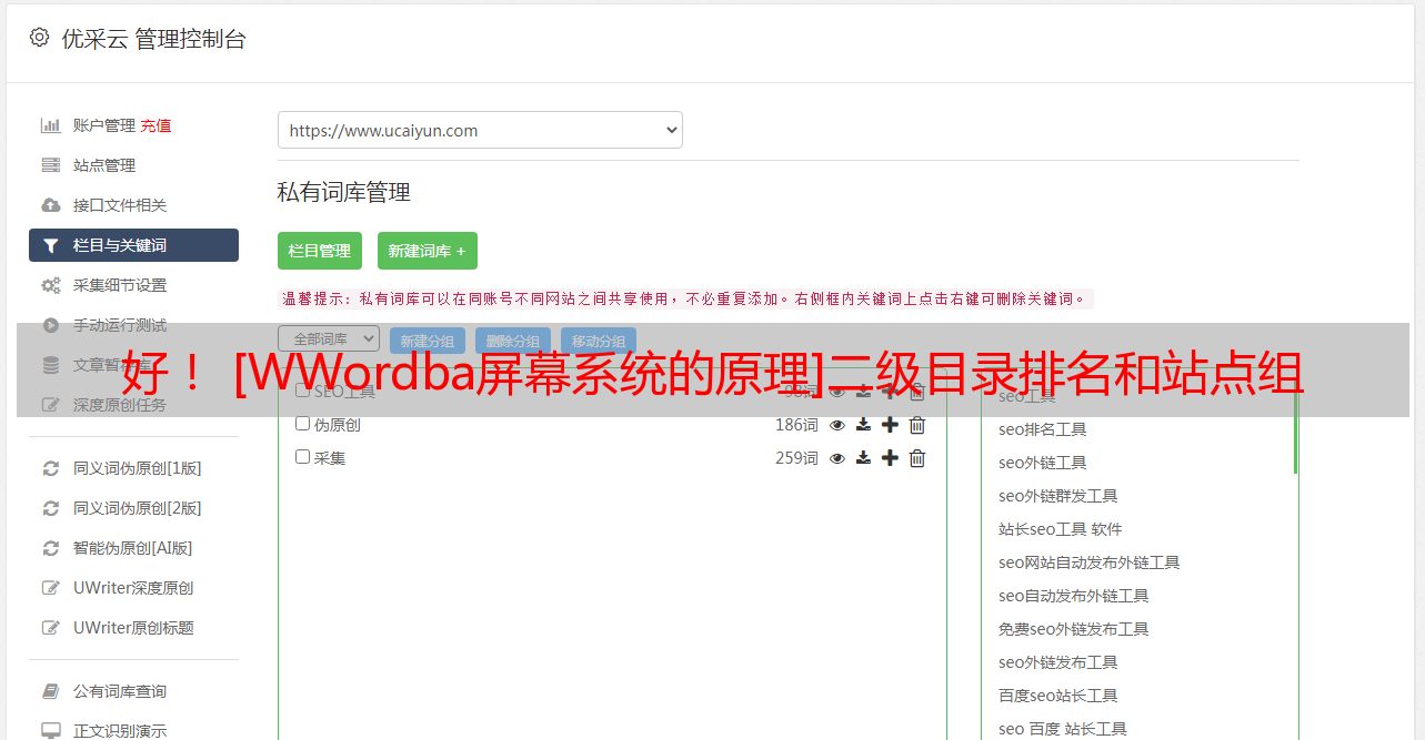 好! [WWordba屏幕系统的原理]二级目录排名和站点组