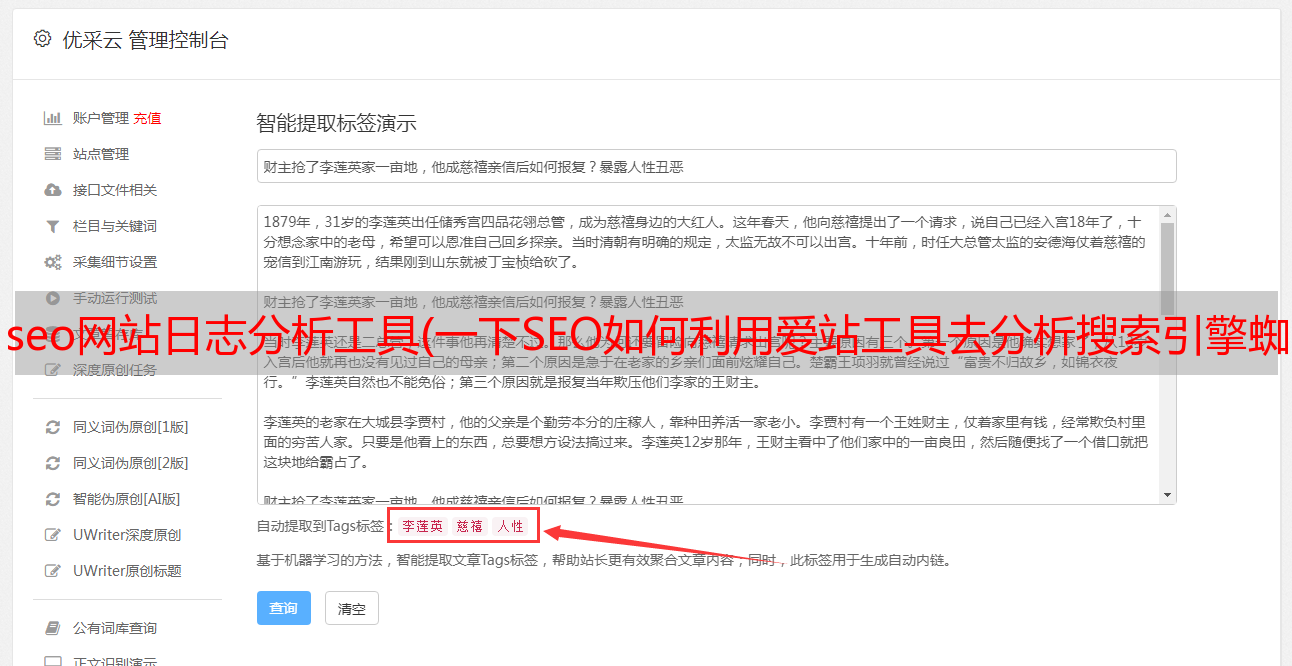 优采云 发布时间: 2022-04-01 12:09seo网站日志分析工具(一下SEO如何利用爱站工具去分析搜索引擎蜘蛛!(图))
