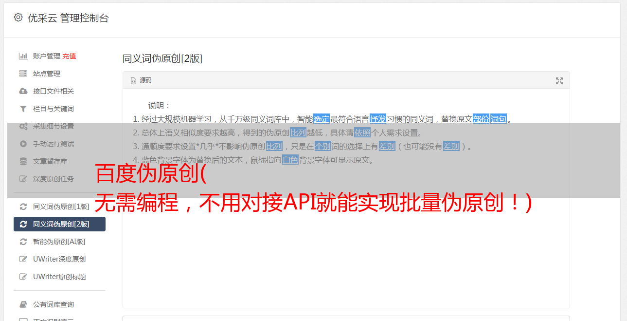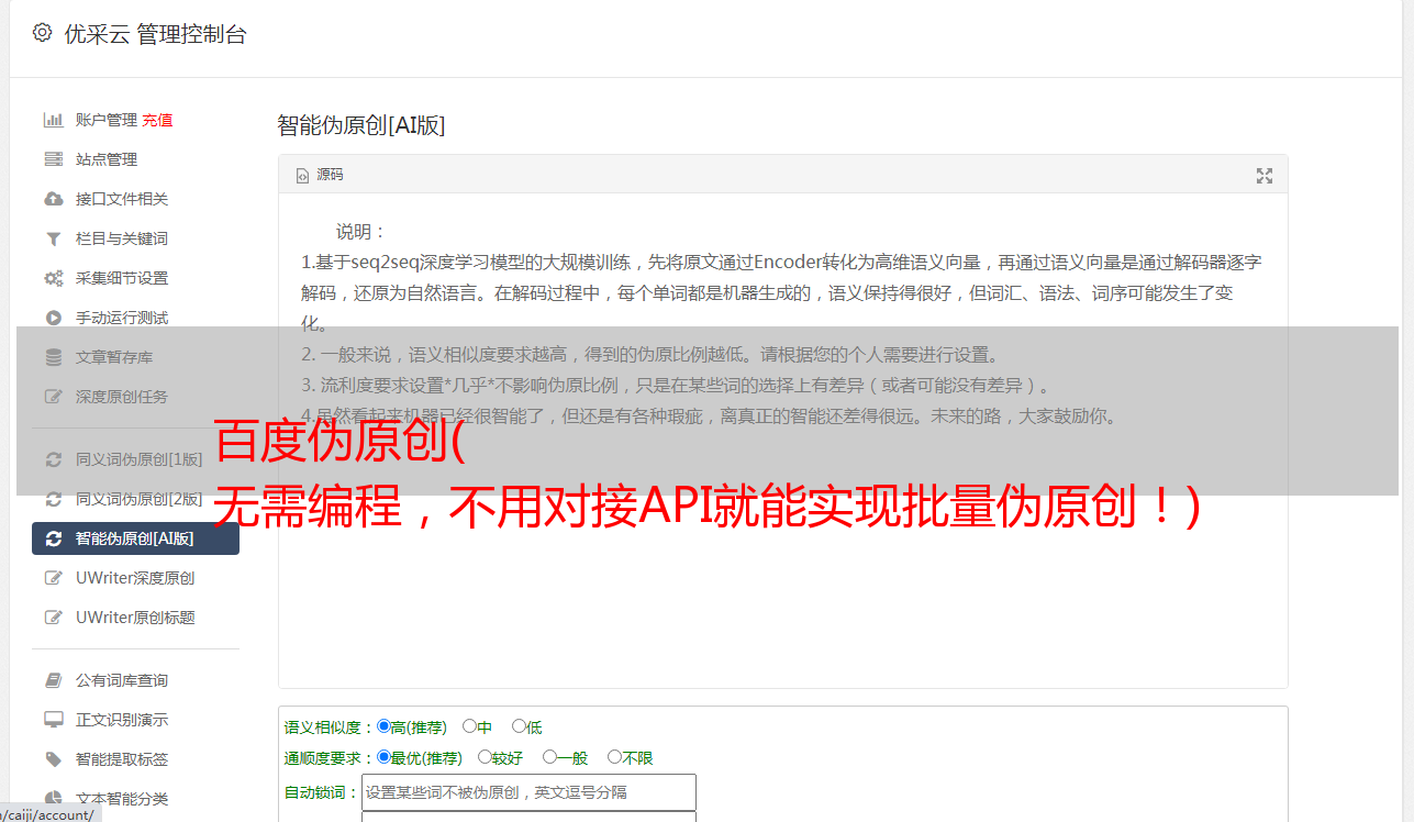 百度伪原创( 无需编程,不用对接API就能实现批量伪原创!)