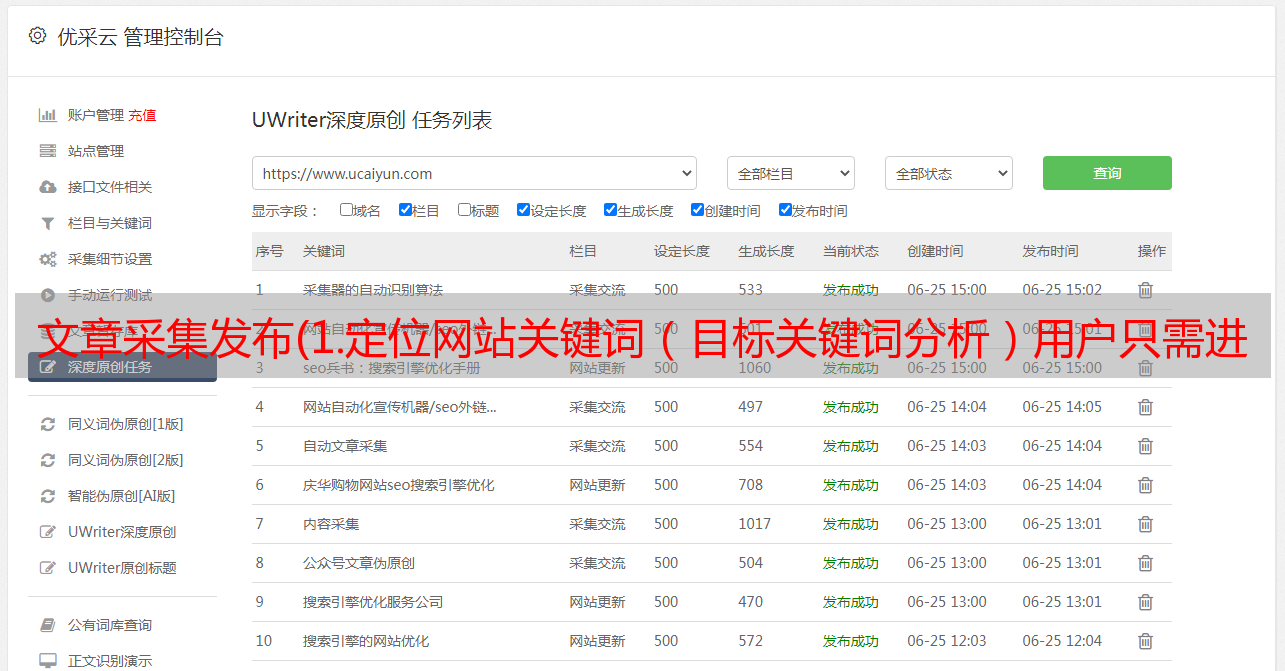优采云 发布时间: 2022-04-01 15:17文章采集发布(1.定位网站关键词(目标关键词分析)用户只需进行简单的设置)