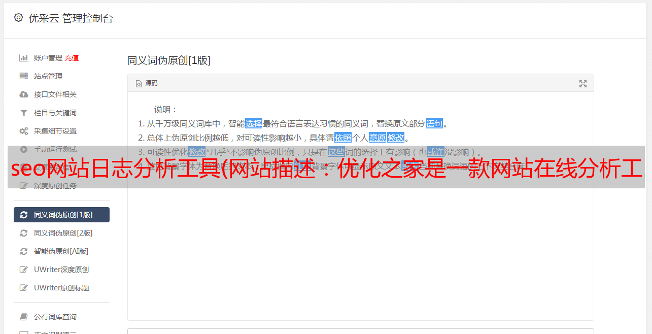 seo网站日志分析工具(网站描述:优化之家是一款网站在线分析工具(图))