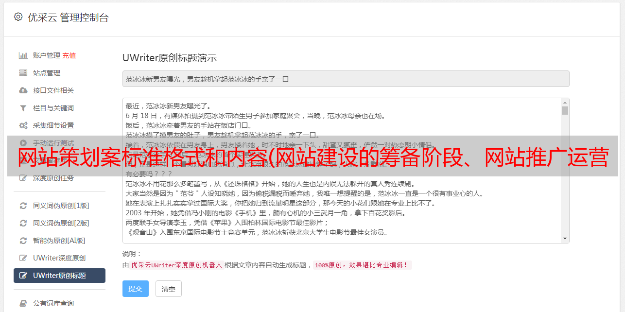 优采云 发布时间: 2022-04-01 20:07网站策划案标准格式和内容(网站建设的筹备阶段、网站推广运营阶段的专业名词及其作用)