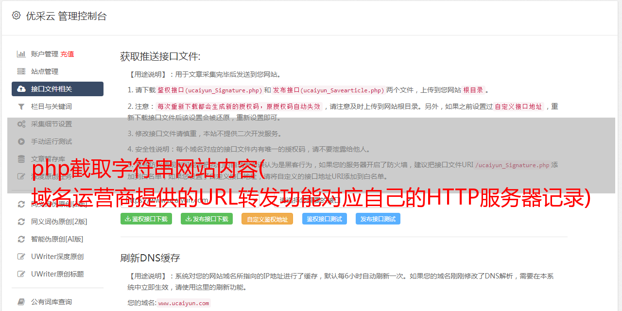 php截取字符串网站内容( 域名运营商提供的URL转发功能对应自己的HTTP服务器记录)