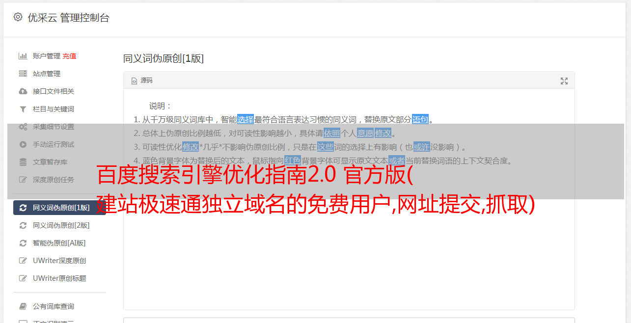 百度搜索引擎优化指南2.0 官方版( 建站极速通独立域名的免费用户,网址提交,抓取)