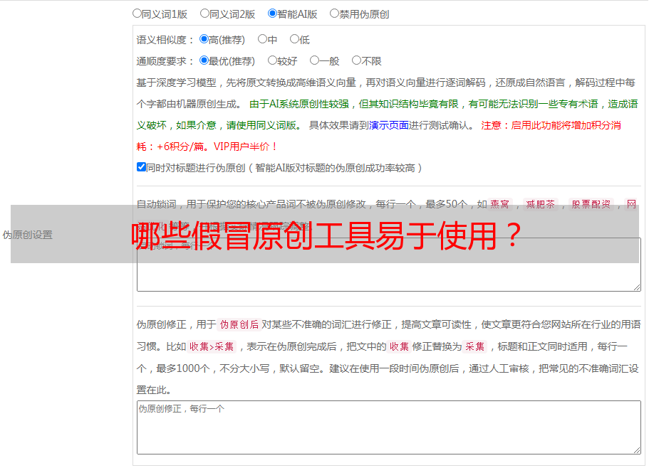 Shiqing伪原创工具实际上是一个功能强大,紧凑且专业的伪原创文章*敏*感*词*. 它支持中文和英文的伪原创模式,并且是完全免费的. 该伪原创工具是专为百度和Google搜索引擎的抓取习惯以及关键字算法分析而开发的. 我们不仅可以使用它来优化文章,还可以使优化后的文章更适合搜索引擎.