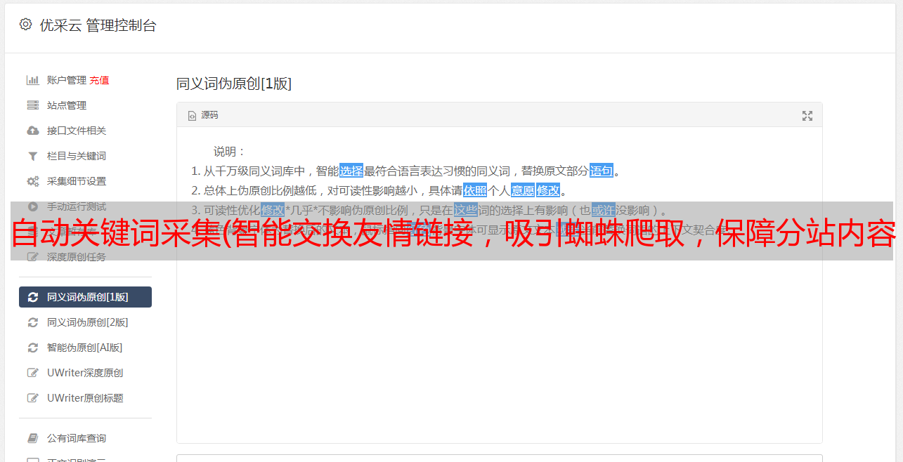优采云 发布时间: 2022-04-02 14:10自动关键词采集(智能交换友情链接,吸引蜘蛛爬取,保障分站内容能持续更新