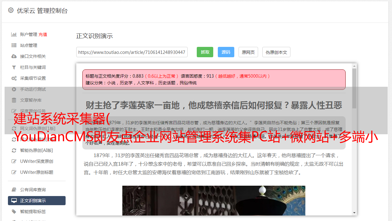 建站系统采集器( YouDianCMS即友点企业网站管理系统集PC站+微网站+多端小程序)