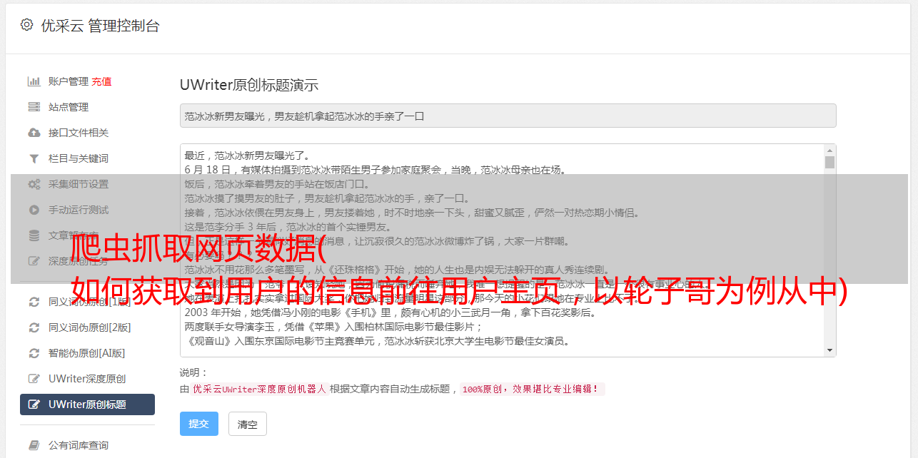 优采云 发布时间: 2022-04-02 20:26爬虫抓取网页数据(