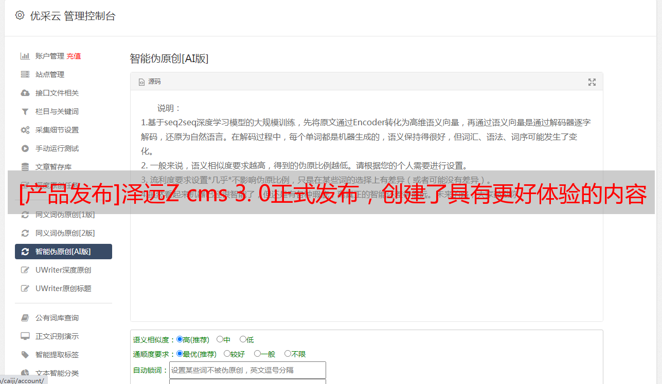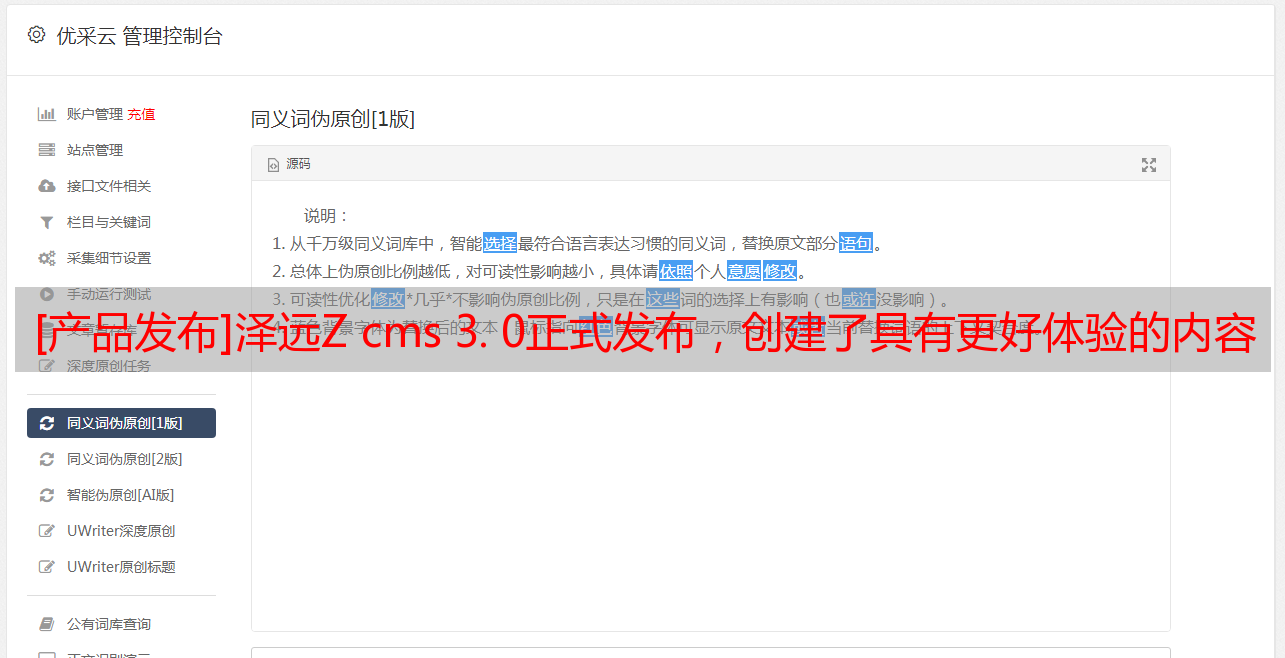 优采云 发布时间: 2021-05-14 03:33[产品发布]泽远Z cms 3. 0正式发布,创建了具有更好体验的内容管理系统