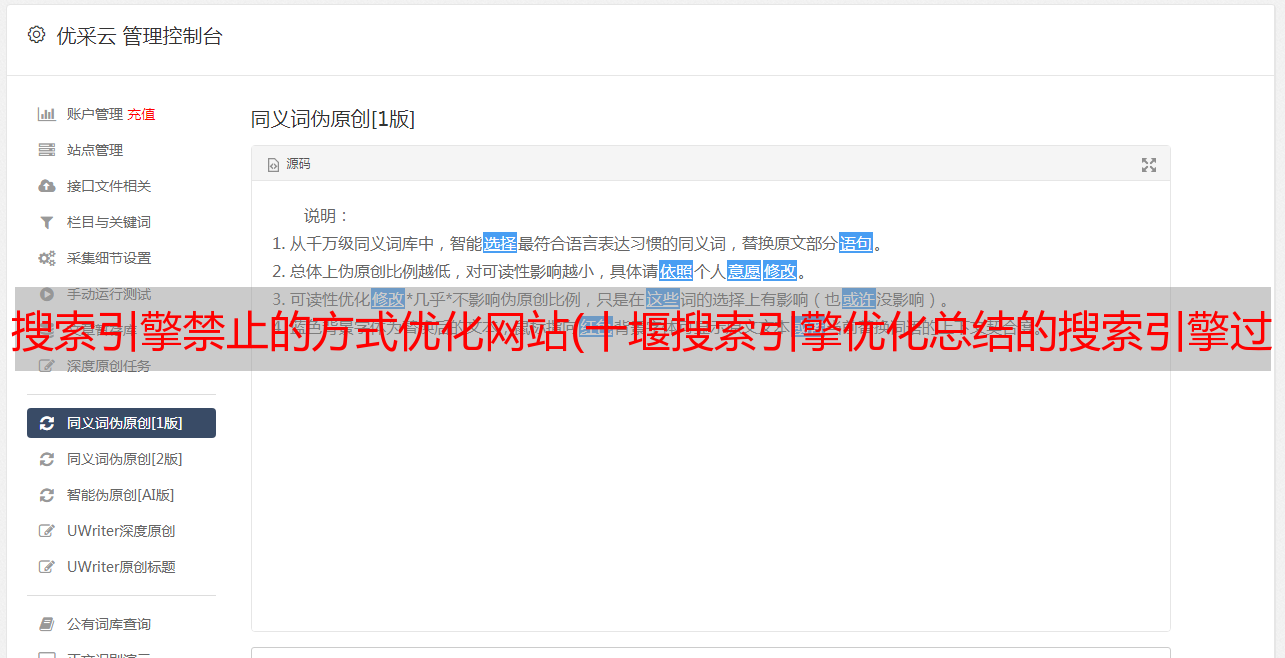 优采云 发布时间: 2022-04-03 05:04搜索引擎禁止的方式优化网站(十堰搜索引擎优化总结的搜索引擎过度优化网站的表现及避免方法