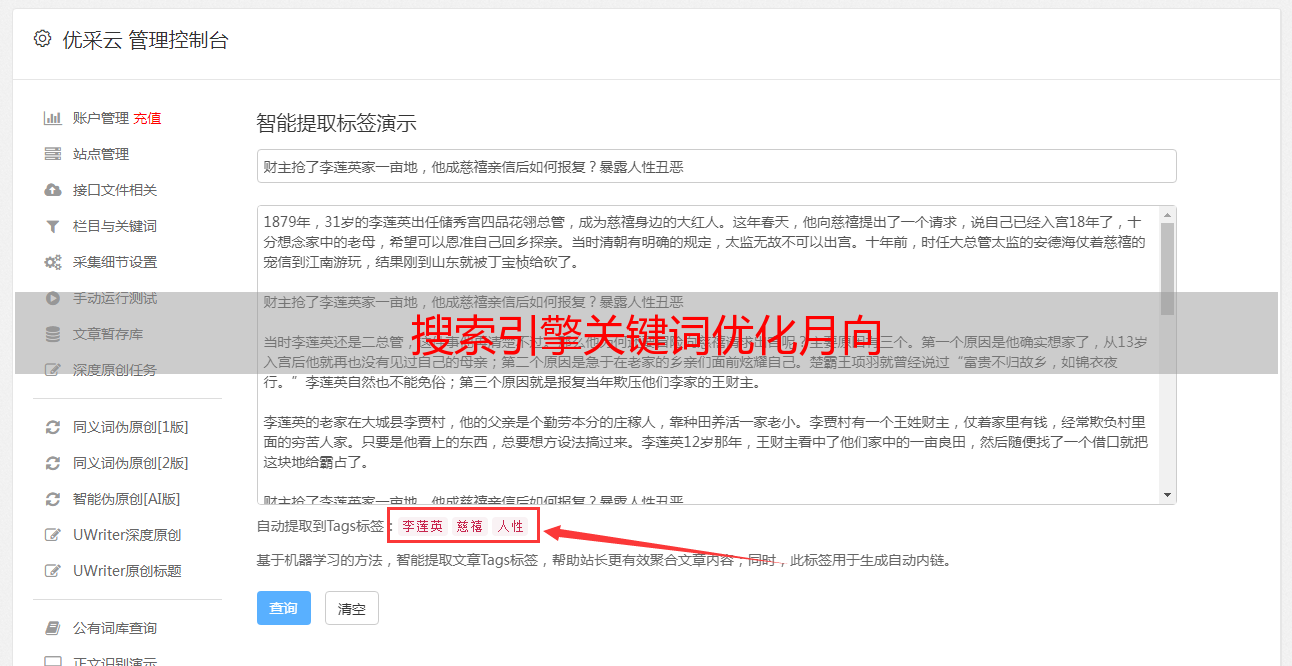 根据该算法,对搜索引擎关键词进行了优化,并且有一些作弊方法。常见的是手动单击,指定多个页面,以及两个人同时浏览彼此的网站需要多长时间。尽管此方法非常隐秘,但即使是防作弊系统也很难找到,但其效率受到限制,并且在忙碌一天后无法完成数千次点击,因此最终效果非常有限,至少我不要太喜欢这种傻瓜式方法。另一个常见的内容是文章内容分页,它将内容文章每隔几百个单词分成一页。如果您想阅读新闻文章,则必须翻三到四页。此方法适用于搜索引擎。评估的指标也许很漂亮,但是用户体验太差了。无论如何,我看到这样的新闻,并且几次阅读都很烦人,然后我只是忽略了此网站的内容。这种方法在垃圾邮件流量站中非常流行,它使用百度新闻来源导入大量流量,然后分页再分页,先投放广告再投放广告,神马搜索引擎关键词优化工具,就像输入I一样输入此网站长时间摩擦后,感觉到了我身上的气味。最近,百度将所有新闻来源都更改为自媒体,自媒体具有许多平台规则,因此这种情况自然消失了。