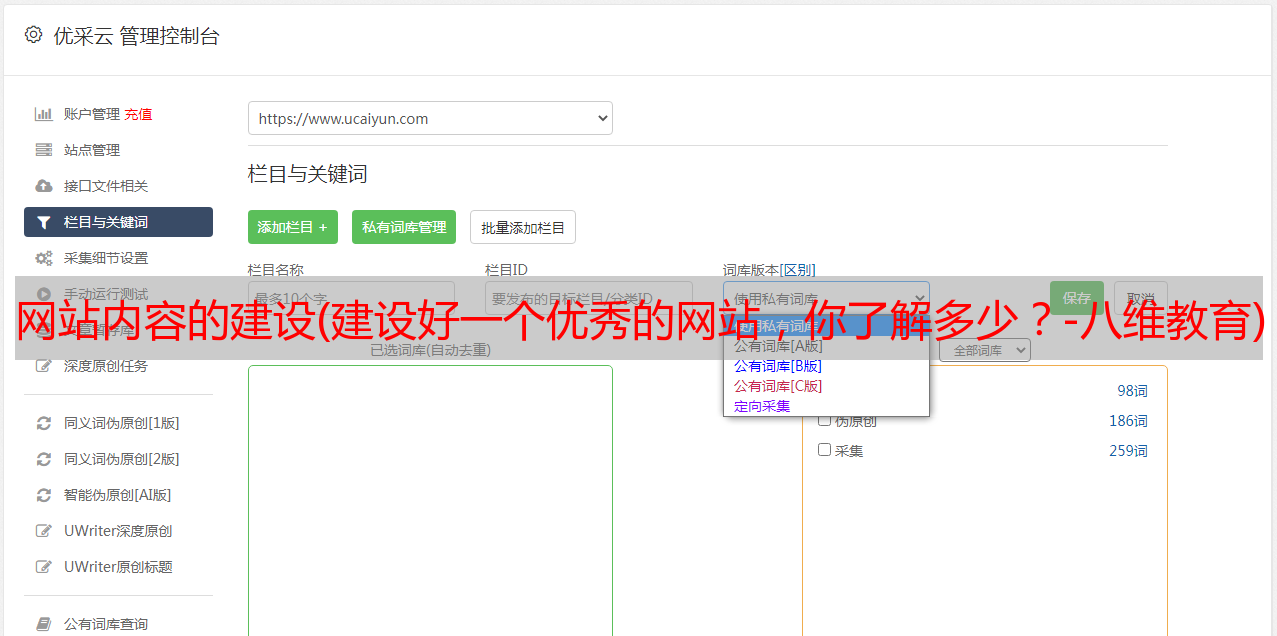 优采云 发布时间: 2022-04-03 18:17网站内容的建设(建设好一个优秀的网站,你了解多少?-八维教育)