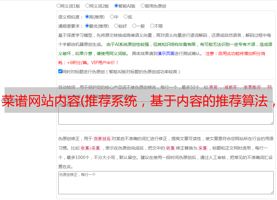 优采云 发布时间: 2022-04-04 06:06菜谱网站内容(推荐系统,基于内容的推荐算法,文本相似度