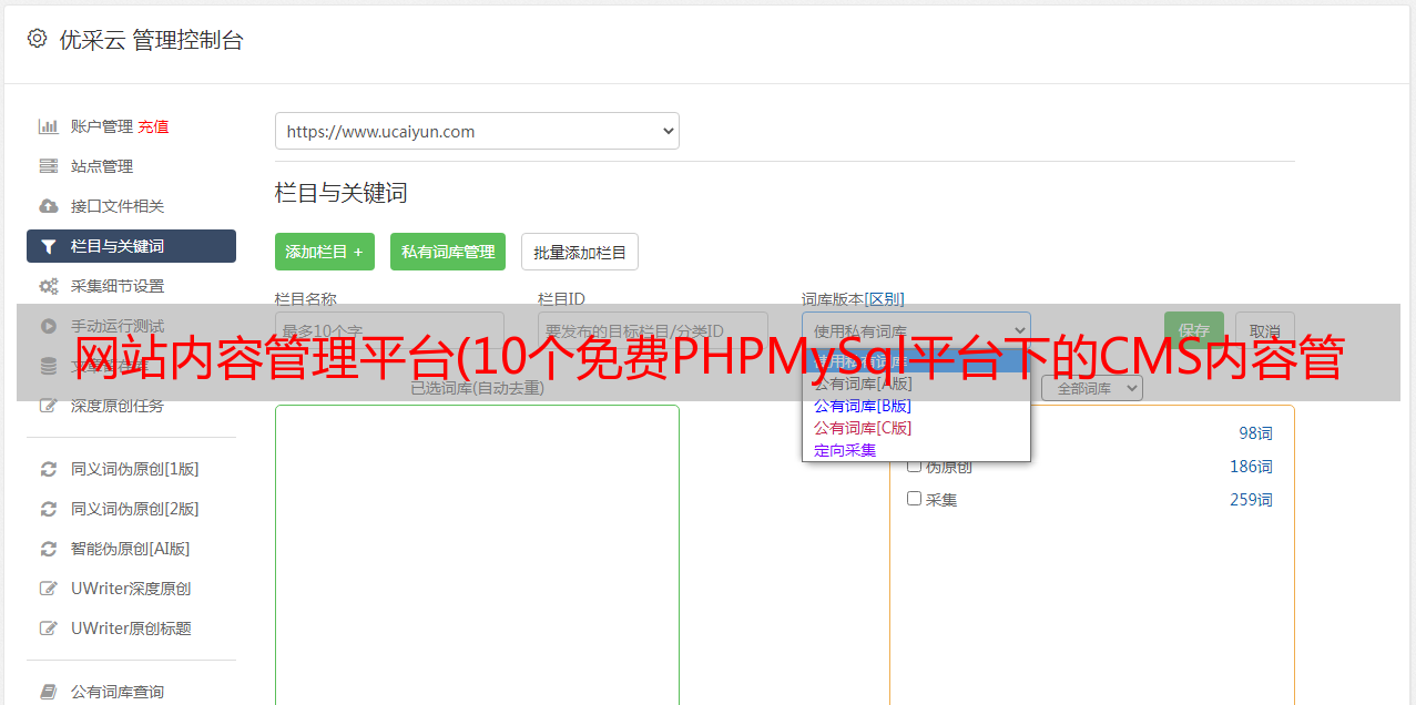 优采云 发布时间: 2022-04-04 10:11网站内容管理平台(10个免费PHPMySql平台下的CMS内容管理系统,可能会对你的选择有指导作用)