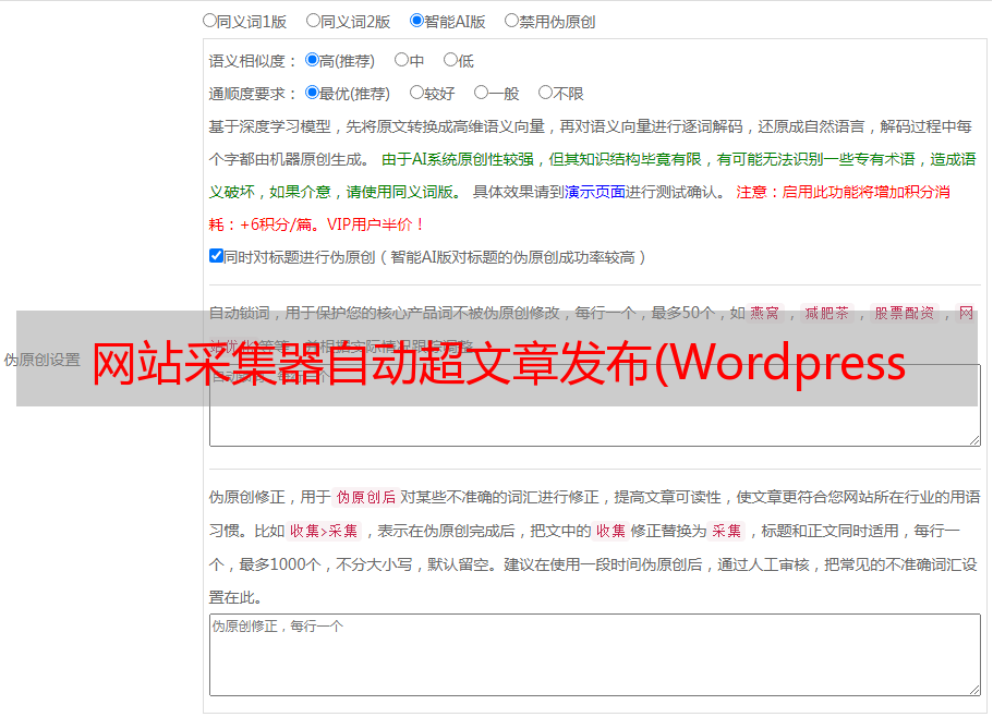 WordPress采集器 可以选择保留原创标签、图片本地化、过滤其他网站 广告等。保持采集到的内容干净纯净(如图)。