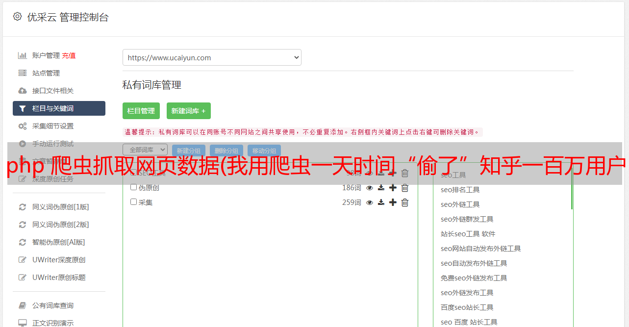 前几天,老板让我去抓拍大众点评某店的数据。当然,我理所当然地拒绝了它,理由是我不会。. . 但是我的抗拒也没用,所以还是去查资料,因为我是做php的,首先要找的是php的网络爬虫源码。经过我不懈的努力,终于找到了phpspider,打开phpspider开发文档我惊呆了首页,标题“我用爬虫“偷”了知乎100万用户,只为证明PHP是世界上最好的语言”,正如我所料,PHP 是世界上最好的语言。事不宜迟,让我们开始学习如何使用它。