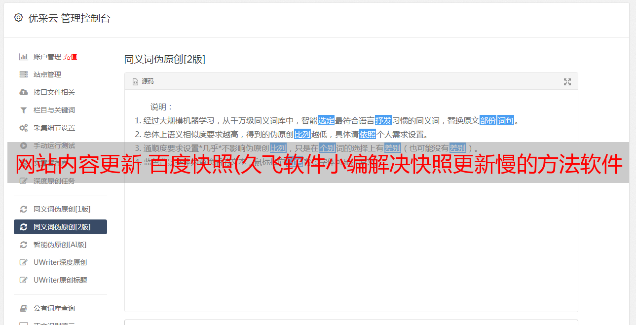 网站内容更新 百度快照(久飞软件小编解决快照更新慢的方法软件解决)