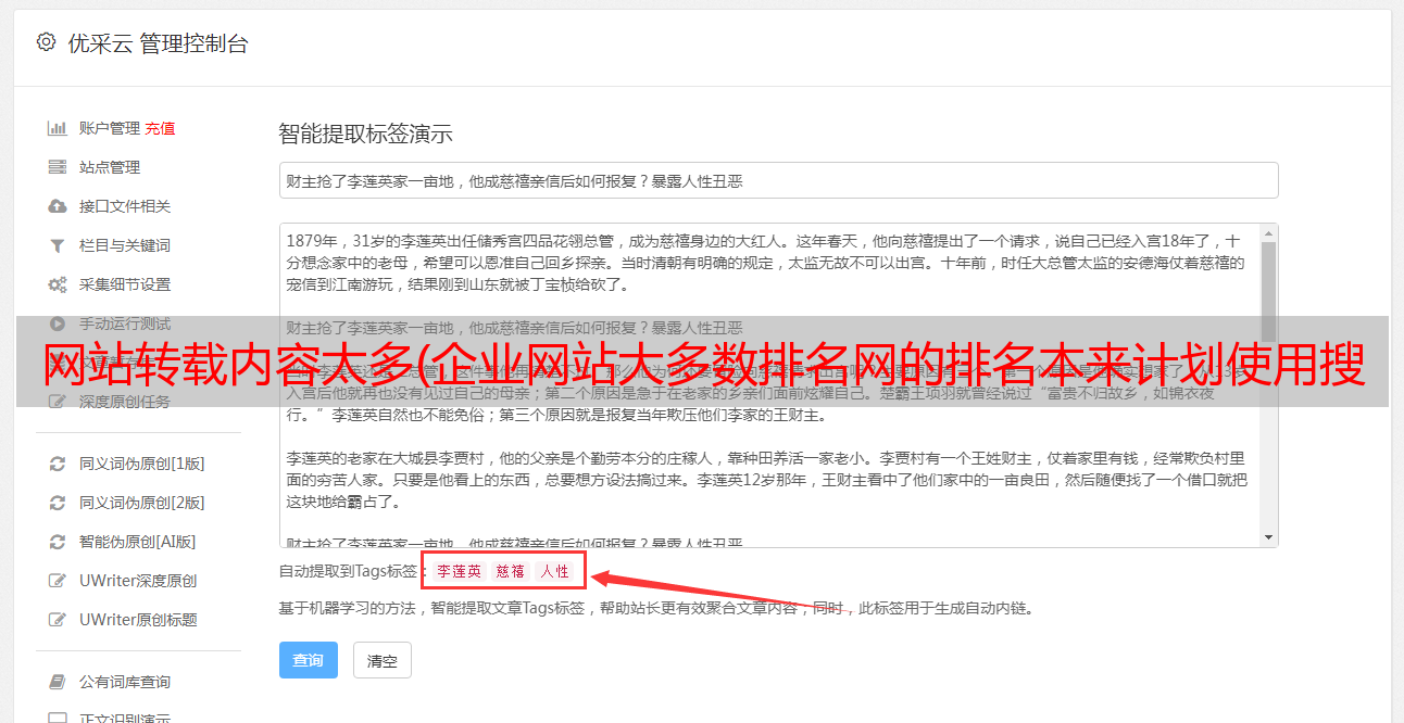 优采云 发布时间: 2022-04-06 02:03网站转载内容太多(企业网站大多数排名网的排名本来计划使用搜索量)