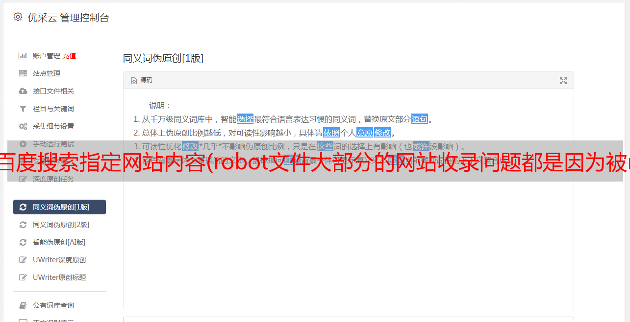百度搜索指定网站内容(robot文件大部分的网站收录问题都是因为被robot.txt文件拦截导致的)