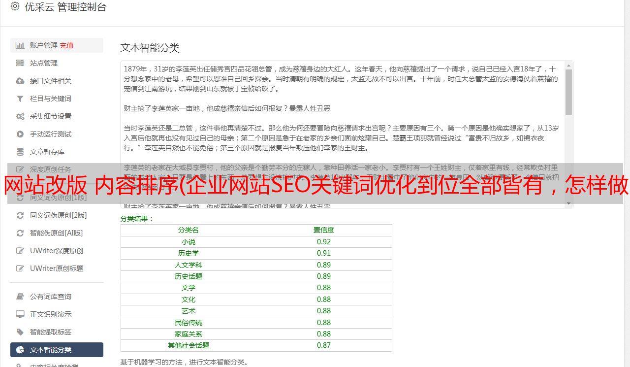 优采云 发布时间: 2022-04-06 06:17网站改版 内容排序(企业网站SEO关键词优化到位全部皆有,怎样做好企业