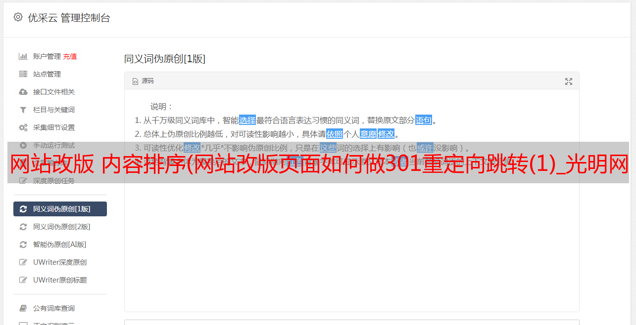 优采云 发布时间: 2022-04-06 17:21网站改版 内容排序(网站改版页面如何做301重定向跳转(1)_光明网(组图))
