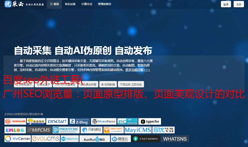 百度seo外链工具( 广州SEO浏览量:页面原型排版、页面美观设计的对比 )