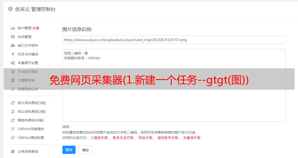 3.优采云采集器官网版内置强大的OCR接口,可解析提取图文,方便用户复制记录.