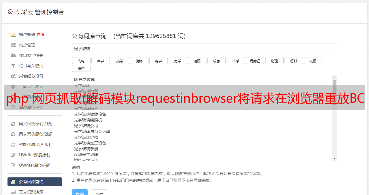 php 网页抓取(解码模块requestinbrowser将请求在浏览器重放BCos?)